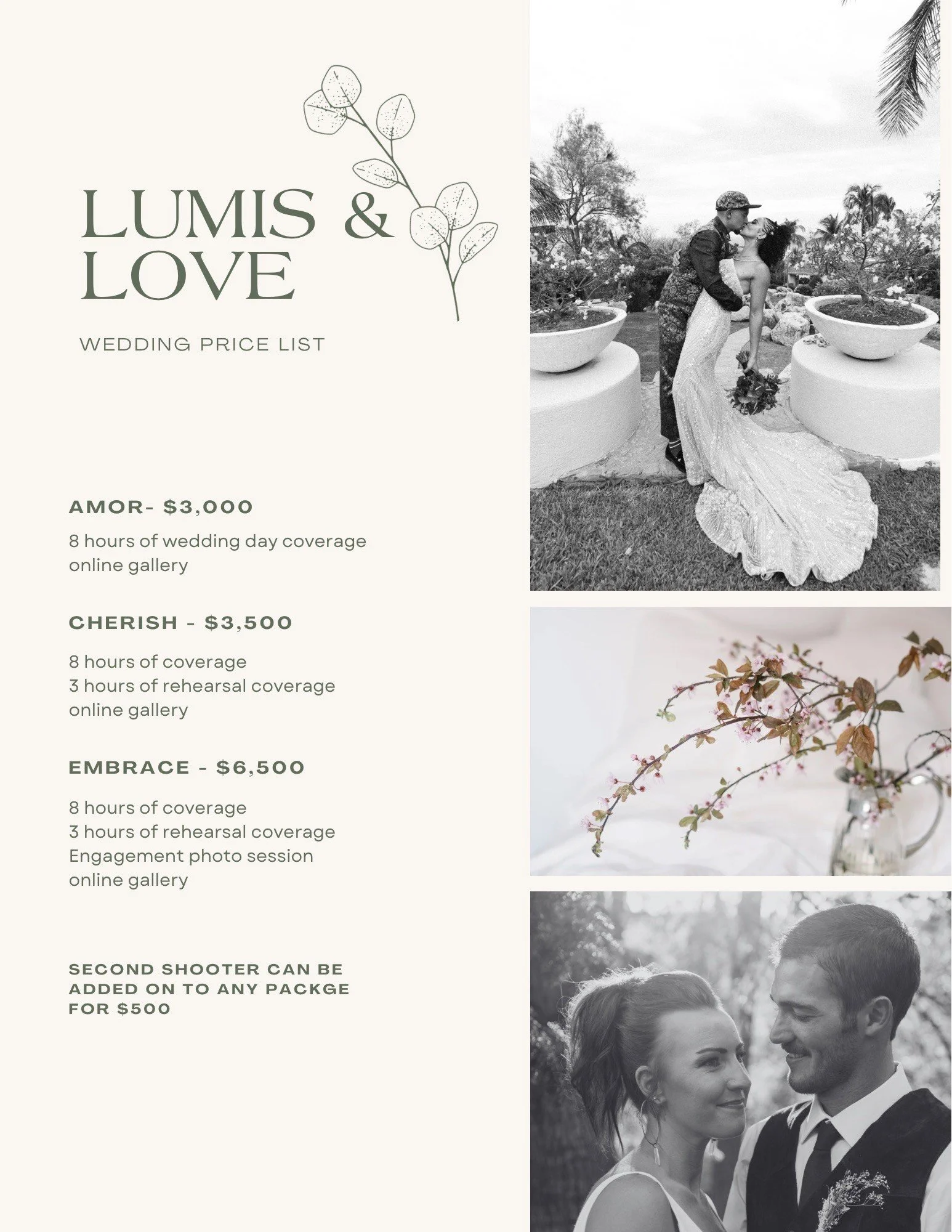I offer a variety of services to ensure that all your special moments will be honored in the photographs taken.
